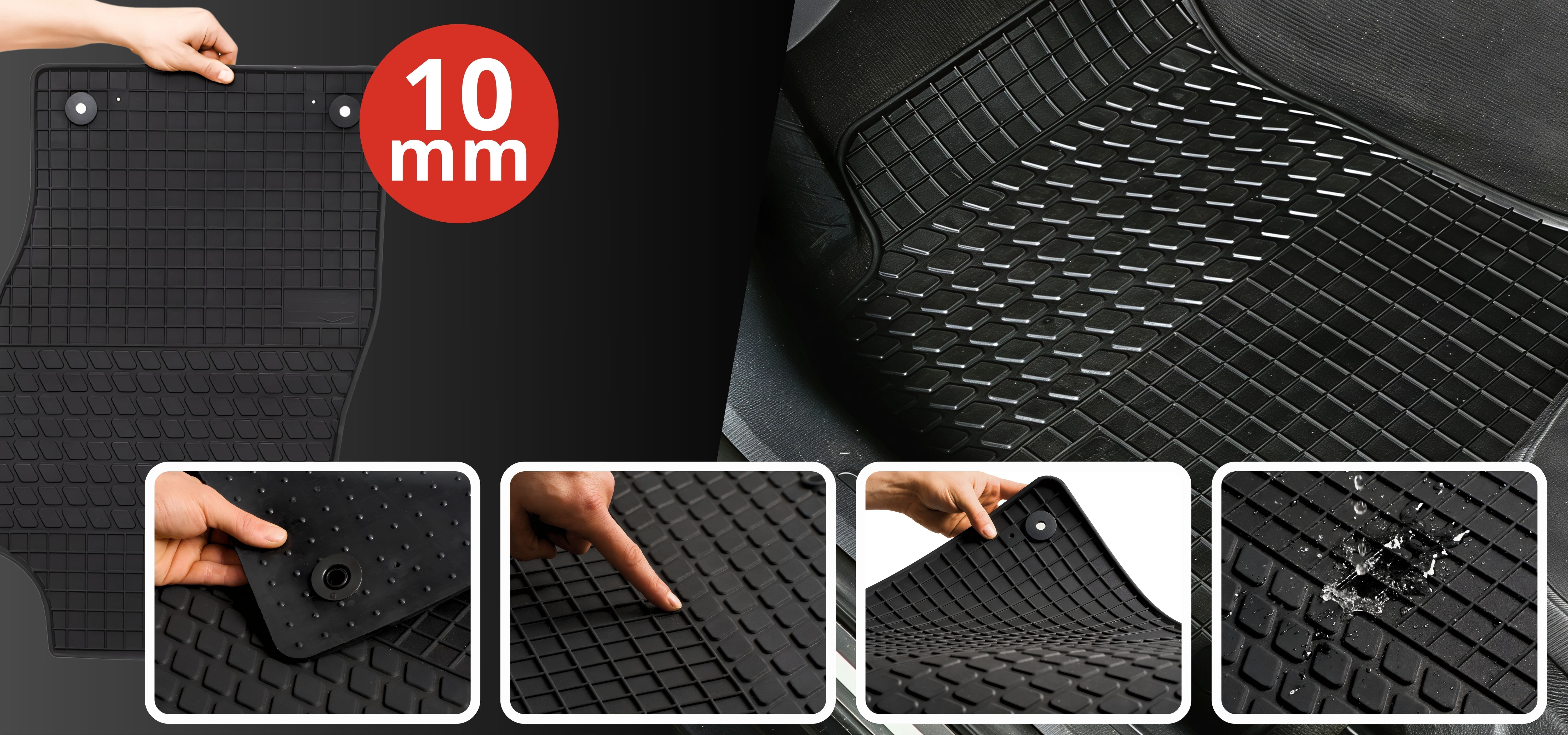 ✅ Wysokie ranty ochronne (ok. 10 mm): skutecznie zatrzymują wodę, błoto, śnieg i inne zabrudzenia, chroniąc wnętrze samochodu przed zniszczeniem.