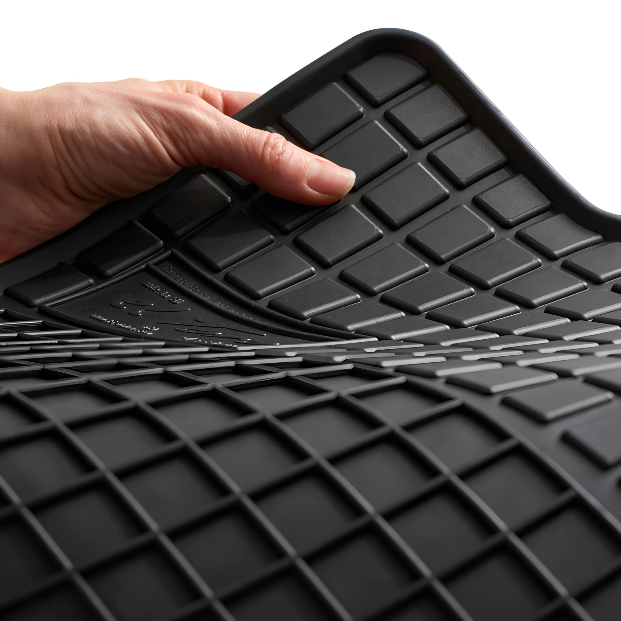 Wytrzymałe dywaniki gumowe stworzone z myślą o wymagających kierowcach, którzy cenią sobie wygodę, bezpieczeństwo i czystość we wnętrzu auta przez cały rok. Precyzyjne dopasowanie do kształtu podłogi samochodu oraz wysoki, szczelny rant skutecznie chronią tapicerkę przed wodą, błotem, solą, piaskiem i innymi zabrudzeniami.