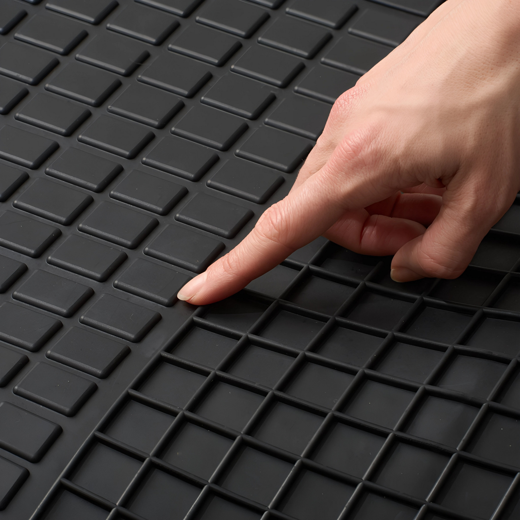 Wytrzymałe dywaniki gumowe stworzone z myślą o wymagających kierowcach, którzy cenią sobie wygodę, bezpieczeństwo i czystość we wnętrzu auta przez cały rok. Precyzyjne dopasowanie do kształtu podłogi samochodu oraz wysoki, szczelny rant skutecznie chronią tapicerkę przed wodą, błotem, solą, piaskiem i innymi zabrudzeniami.