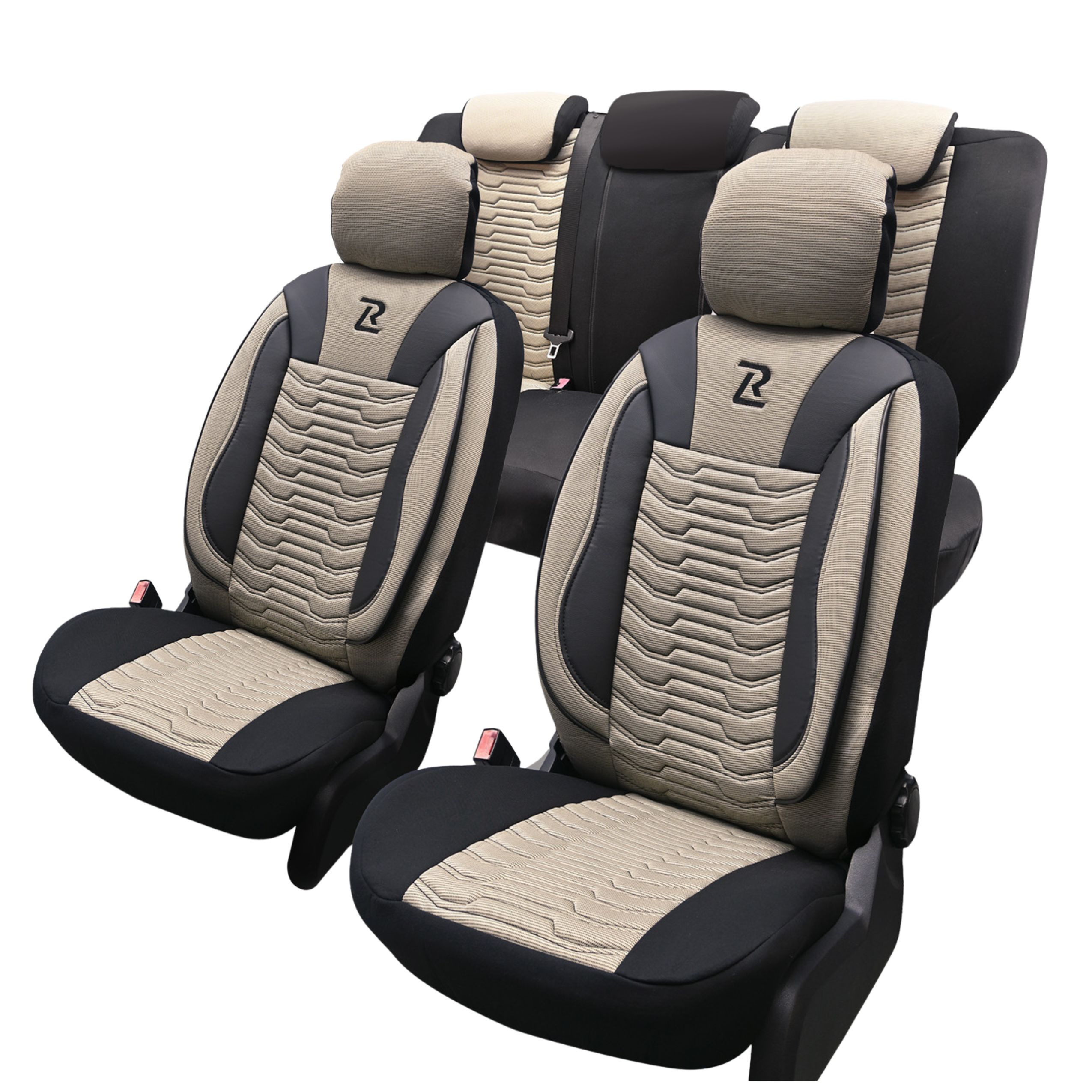 Pokrowce Samochodowe na Fotele Siedzenia Auta PARIS Komplet Czarno-Beżowe