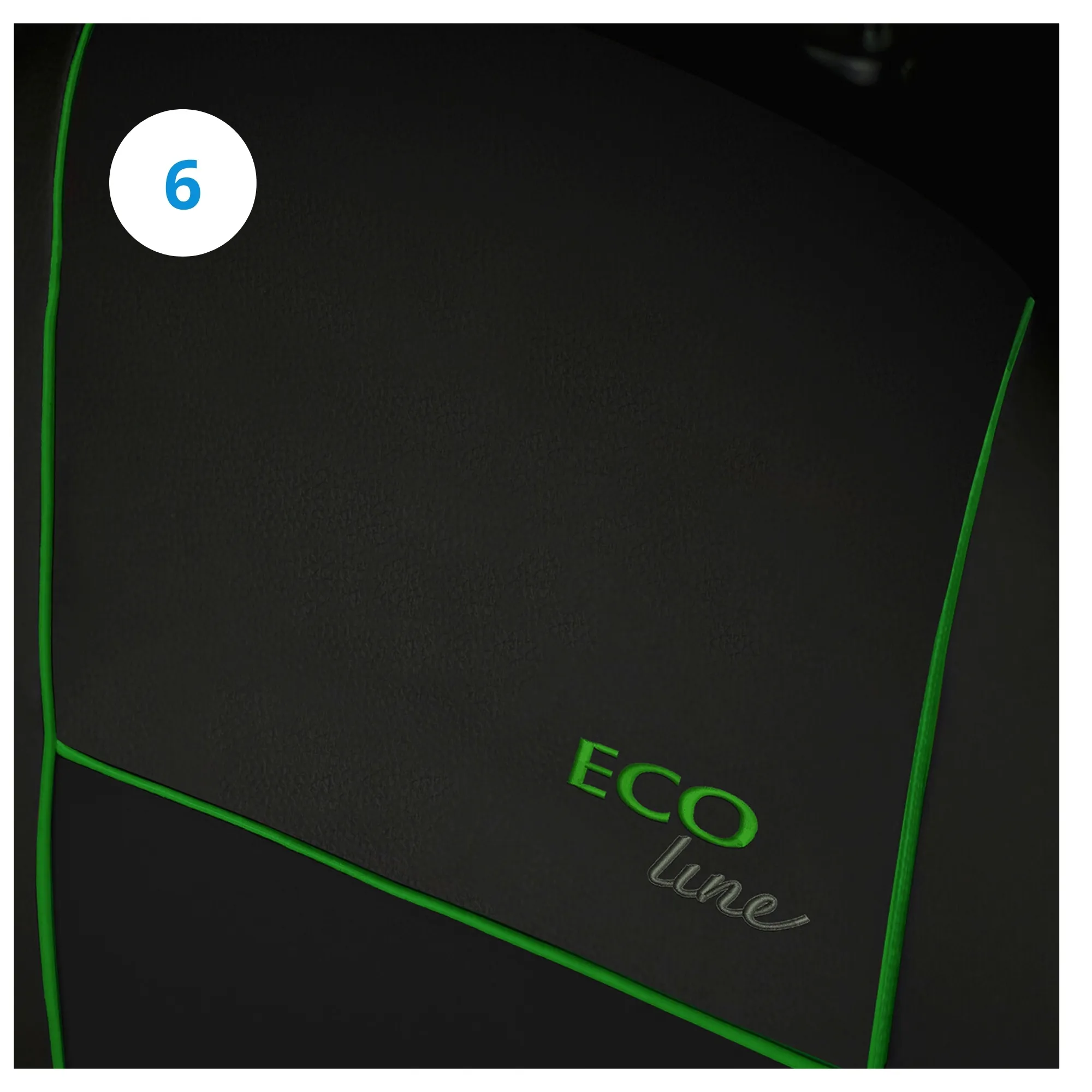 Pokrowce na siedzenia serii Eco-Line wykonane zostały ze skóry ekologicznej w zestawie z elegancką lamówką w wielu kolorach do wyboru, oraz estetycznym napisem wykonanym w technice haftu komputerowego zachowanego w jednakowej tonacji. Zastosowana lamówka nadaje pokrowcom niepowtarzalny design oraz zwiększa ich wytrzymałość.