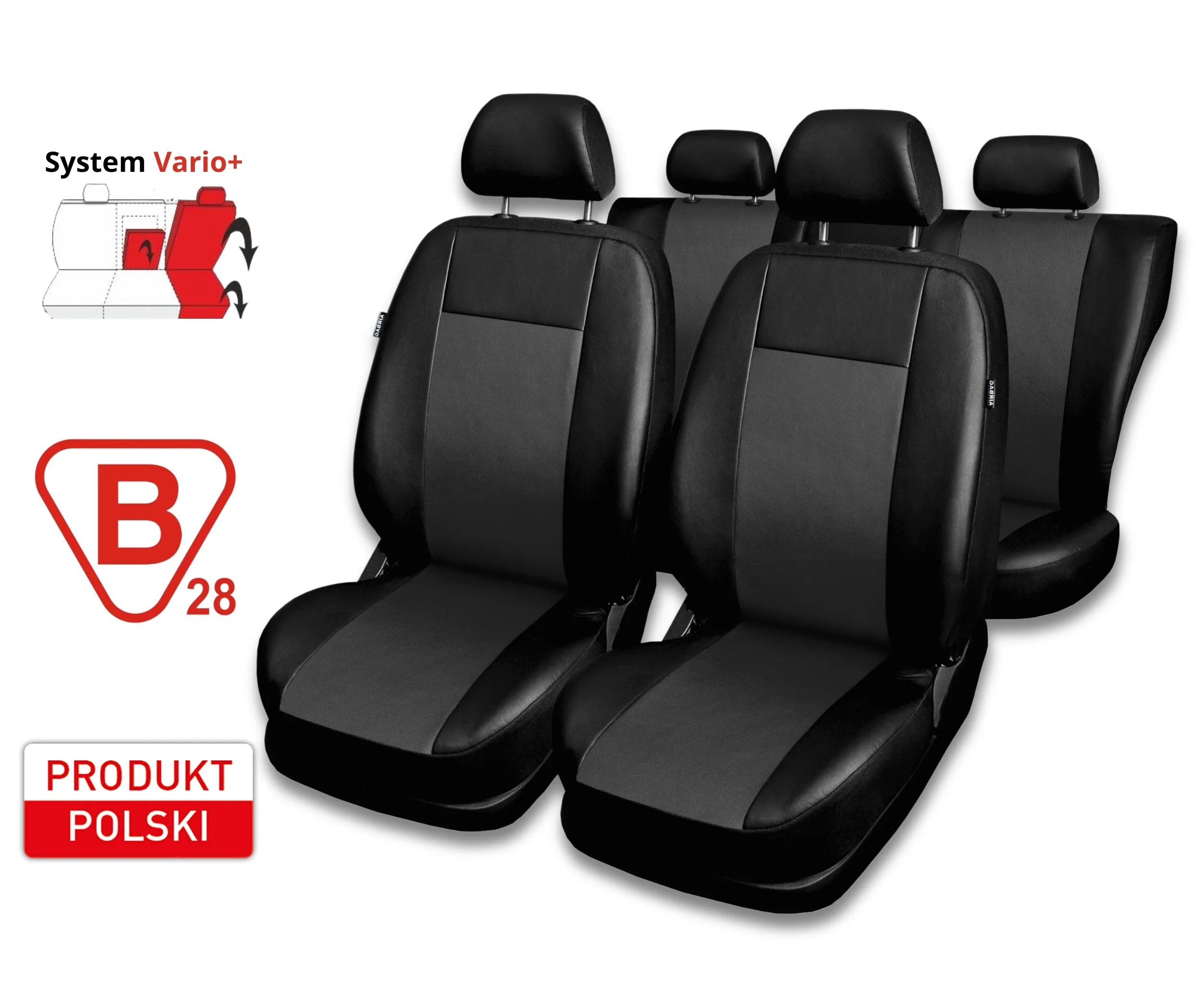 W pokrowcach zastosowany został system VARIO+. W tylnej kanapie zamontowano zamki błyskawiczne, dzięki którym można korzystać z najpopularniejszych na rynku dzieleń kanap (np. kanapa dzielona w całości 2/1, dzielone tylko oparcie a siedzisko całe i oczywiście wariant gdy cała kanapa stanowi jeden element).