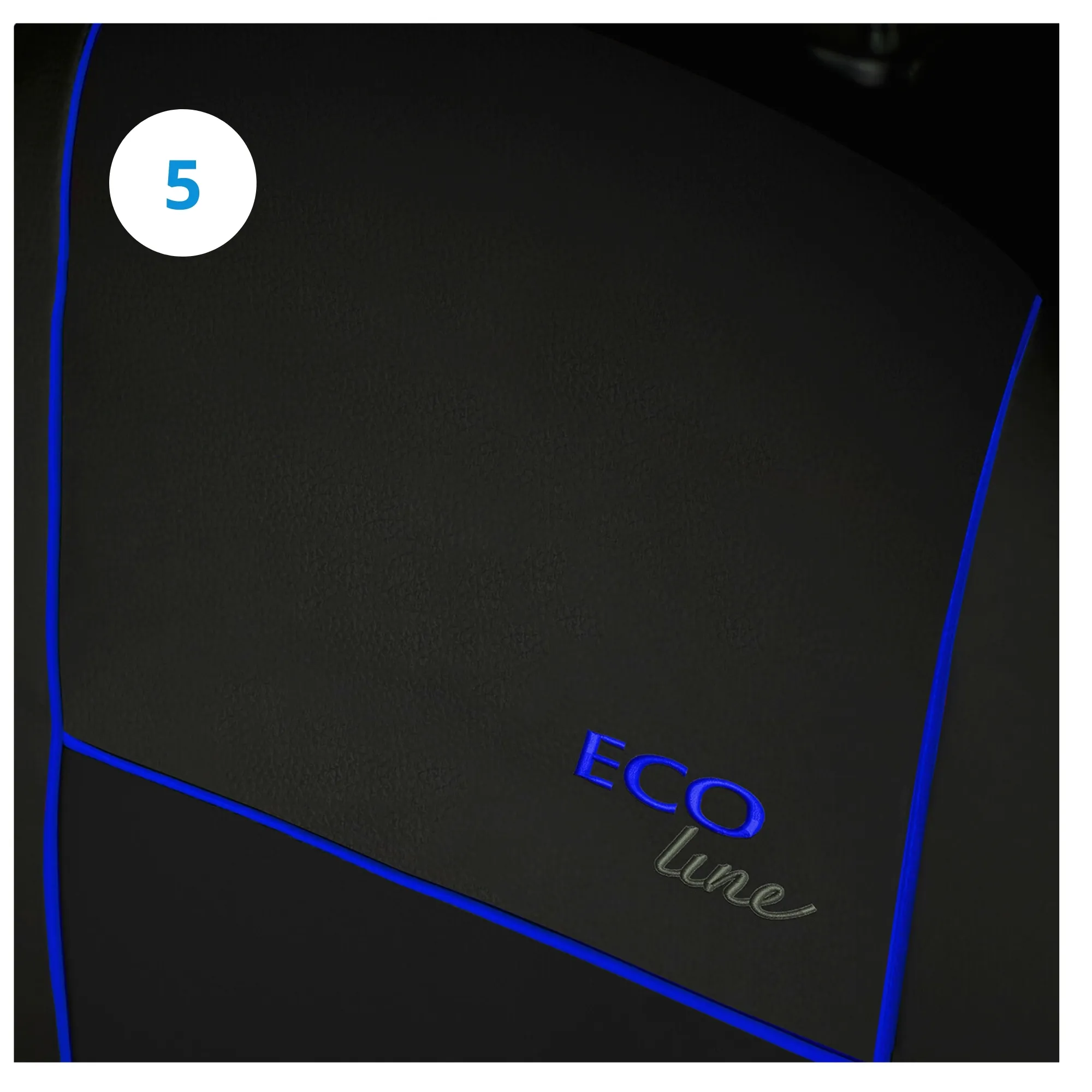W pokrowcach Eco-Line zastosowano wysokiej jakości materiał imitujący skórę (Eko skóra) z lamówką wzmacniającą w różnych kolorach do wyboru. Całość podszyta jest pianką, która zapobiega przesuwaniu się pokrowców względem foteli podczas wsiadania oraz wysiadania. Miejsca podatne na przetarcia zostały wzmocnione podszewką, co zapobiega szybszemu przetarciu się.