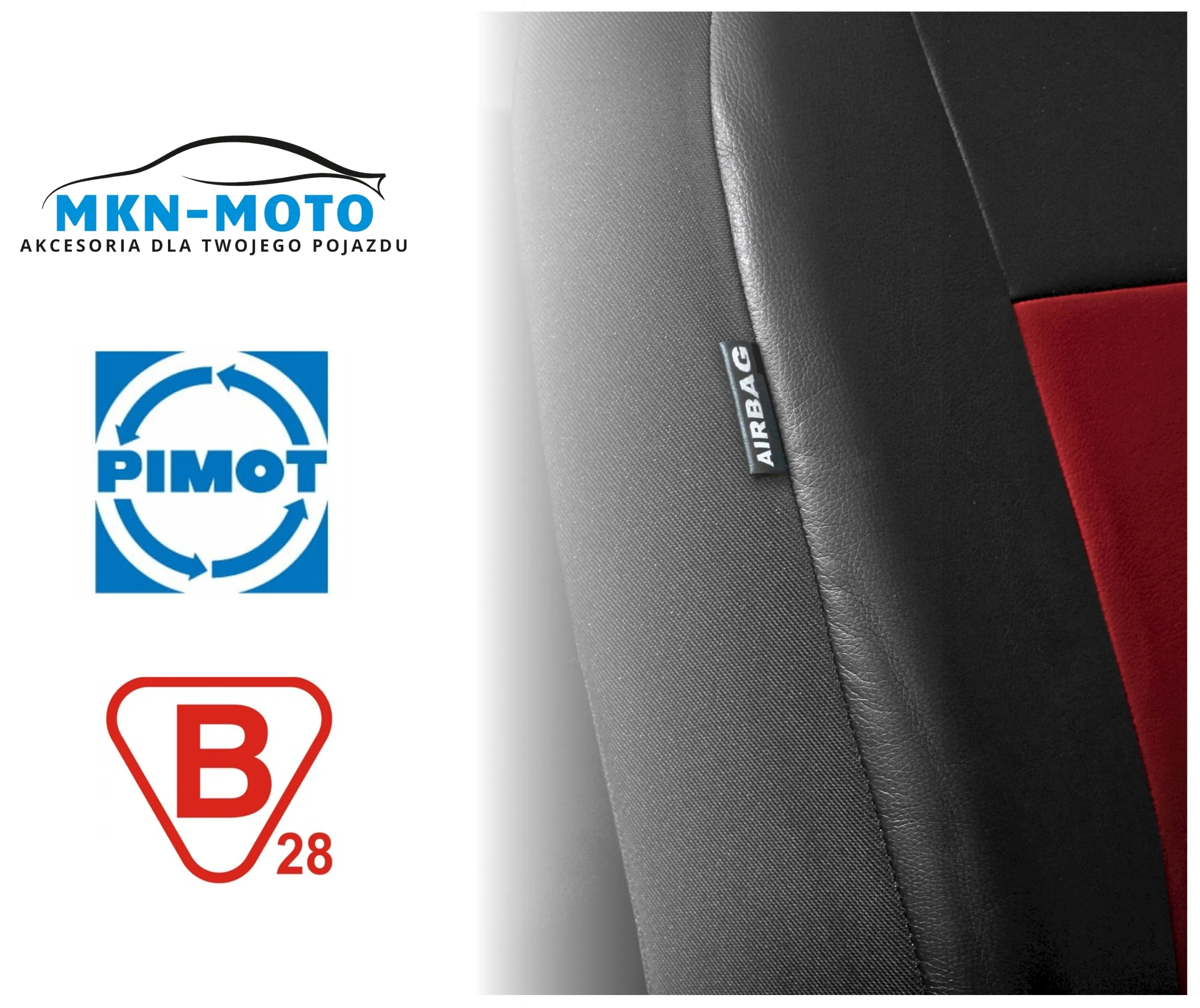 Pokrowce w standardzie posiadają certyfikowany szew AIRBAG, dzięki któremu przystosowane są do samochodów zarówno z bocznymi poduszkami powietrznymi w fotelach, jak i do standardowych siedzeń. Pokrowce zakrywają fotele w całości nie zakłócając pracy AIRBAG-ów. W miejscu specjalnego szwu znajduje się oznaczenie w postaci metki z napisem "AIRBAG".