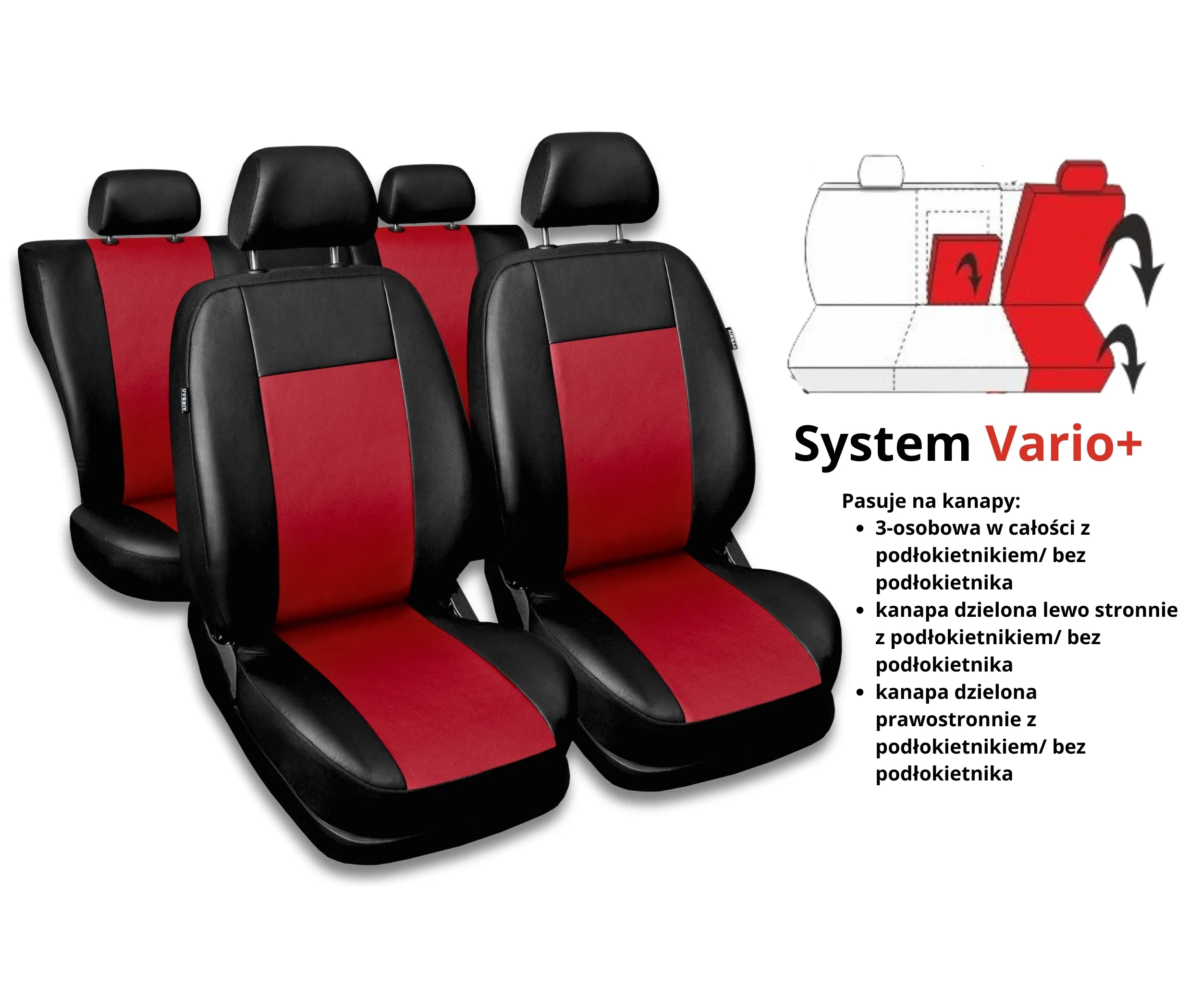 W pokrowcach zastosowany został system VARIO+. W tylnej kanapie zamontowano zamki błyskawiczne, dzięki którym można korzystać z najpopularniejszych na rynku dzieleń kanap (np. kanapa dzielona w całości 2/1, dzielone tylko oparcie a siedzisko całe i oczywiście wariant gdy cała kanapa stanowi jeden element).