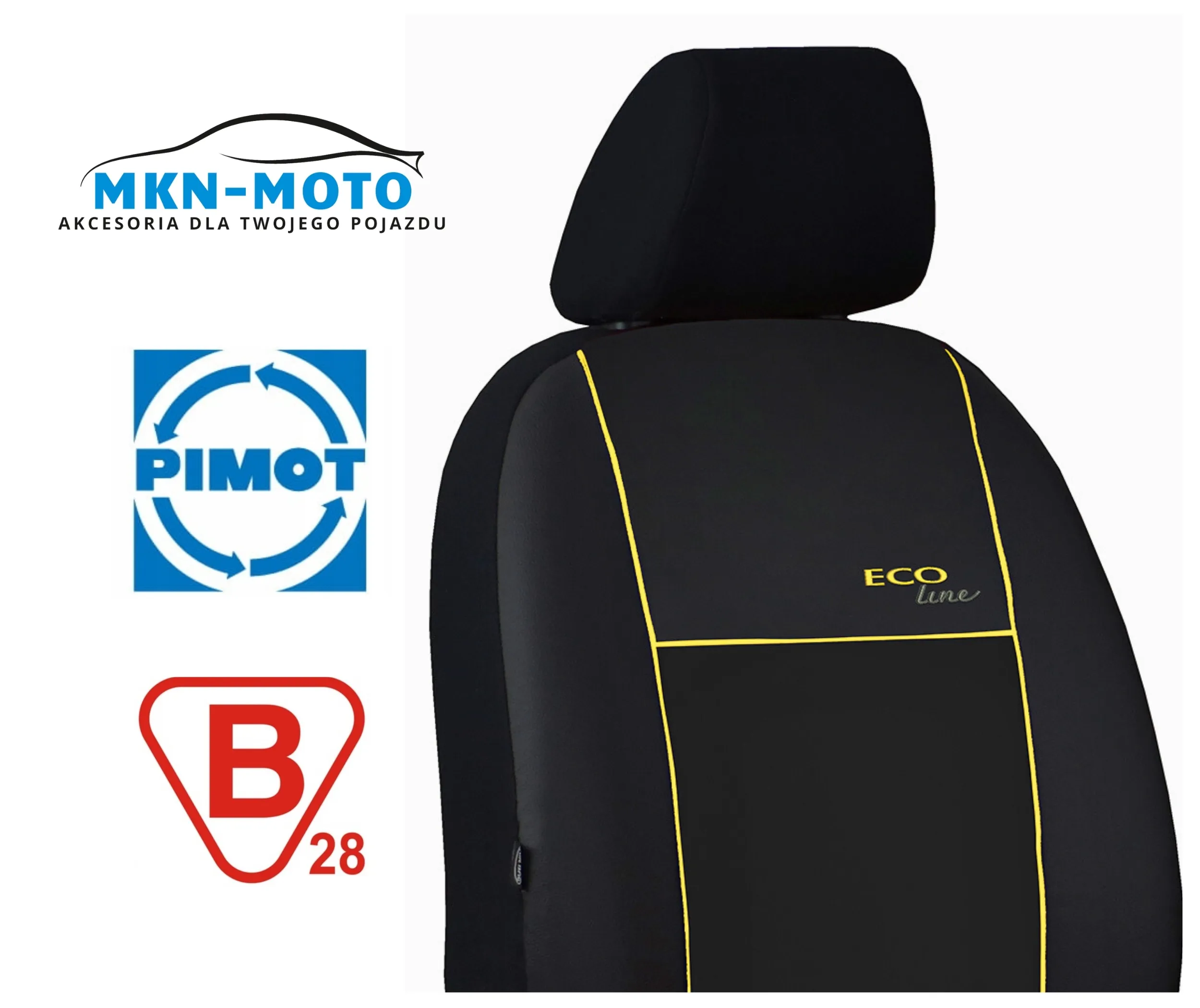 W pokrowcach Eco-Line zastosowano wysokiej jakości materiał imitujący skórę (Eko skóra) z lamówką wzmacniającą w różnych kolorach do wyboru. Całość podszyta jest pianką, która zapobiega przesuwaniu się pokrowców względem foteli podczas wsiadania oraz wysiadania. Miejsca podatne na przetarcia zostały wzmocnione podszewką, co zapobiega szybszemu przetarciu się.