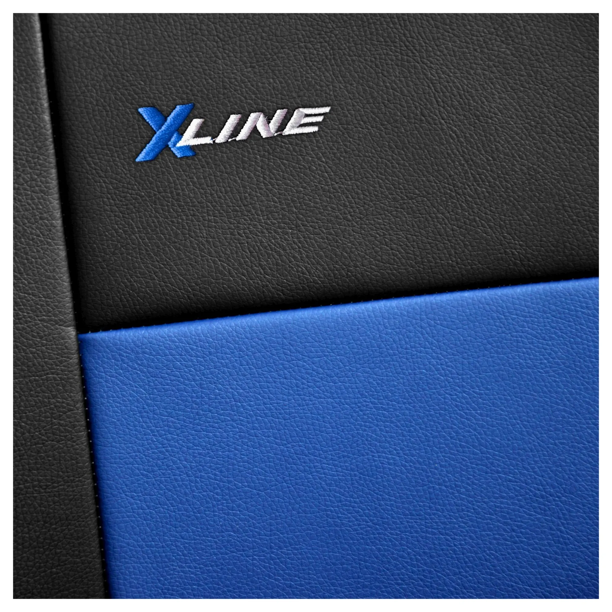 W przedniej części pokrowców X-LINE, użyte zostały wysokiej jakości materiał imitujący skórę (Eko skóra) z fakturą skóry naturalnej. Całość pokrowców podszyta jest pianką, która zapobiega przesuwaniu się pokrowców względem foteli podczas wsiadania oraz wysiadania. Miejsca podatne na przetarcia zostały wzmocnione podszewką, co zapobiega szybszemu przetarciu się pokrowców.