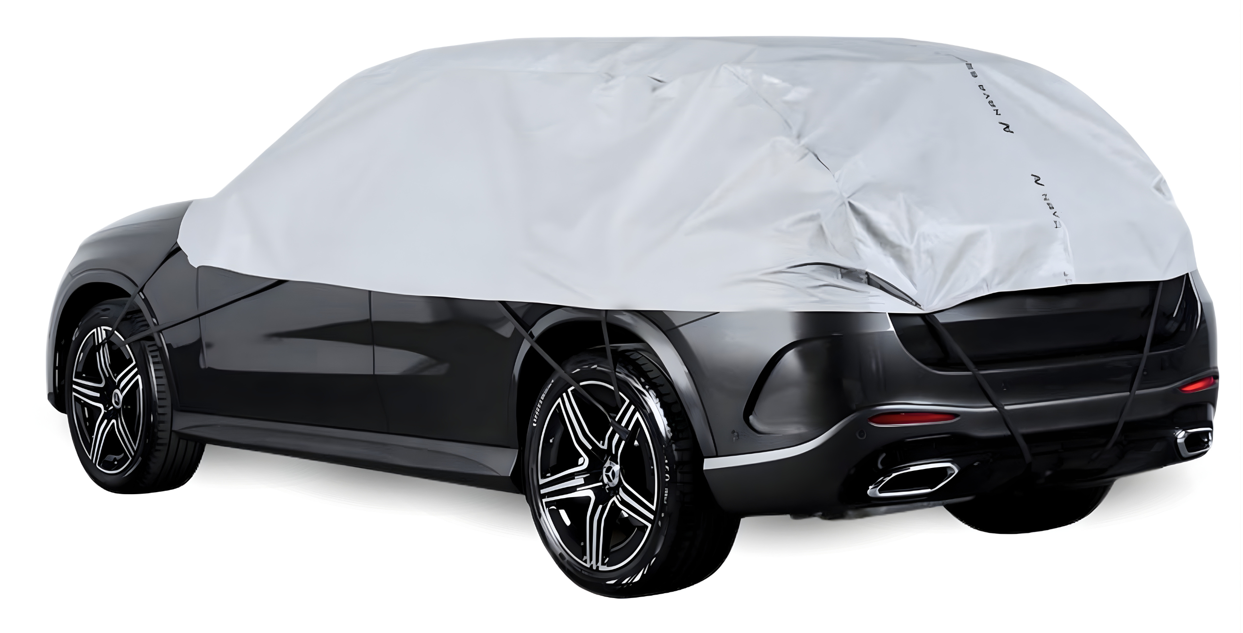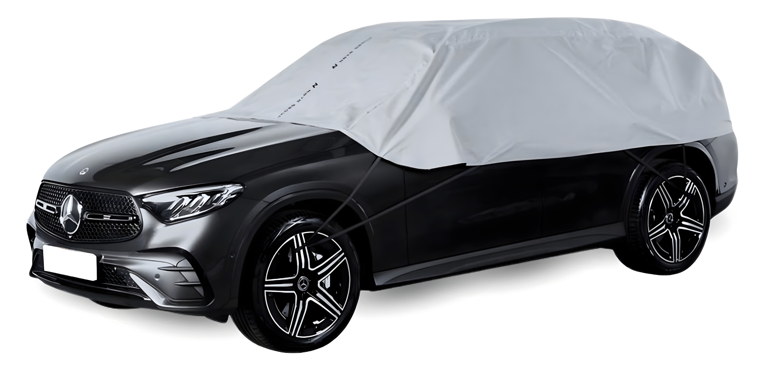 Warstwa zewnętrzna o właściwościach wodoodpornych i paroprzepuszczalnych chroni pojazd przed oddziaływaniem czynników atmosferycznych. Warstwa wewnętrzna, bezpośrednio przylegająca do karoserii, wykonana jest z polipropylenu i została zaprojektowana z myślą o bezpiecznym kontakcie z powierzchnią pojazdu. Górna część półpokrowca zapobiega przedostawaniu się wody, natomiast boki o wysokiej paroprzepuszczalności odprowadzają nadmiar wilgoci spod osłony. Wbudowany filtr UV wspiera trwałość materiału.