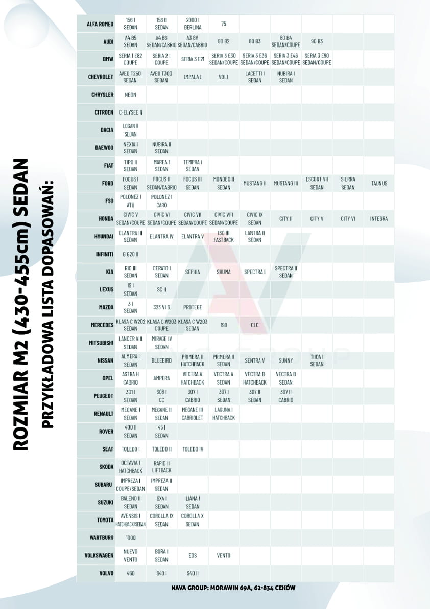 | Dane techniczne: Rozmiar pokrowca: M2S 430-455cm Typ nadwozia: sedan | ![]() |
