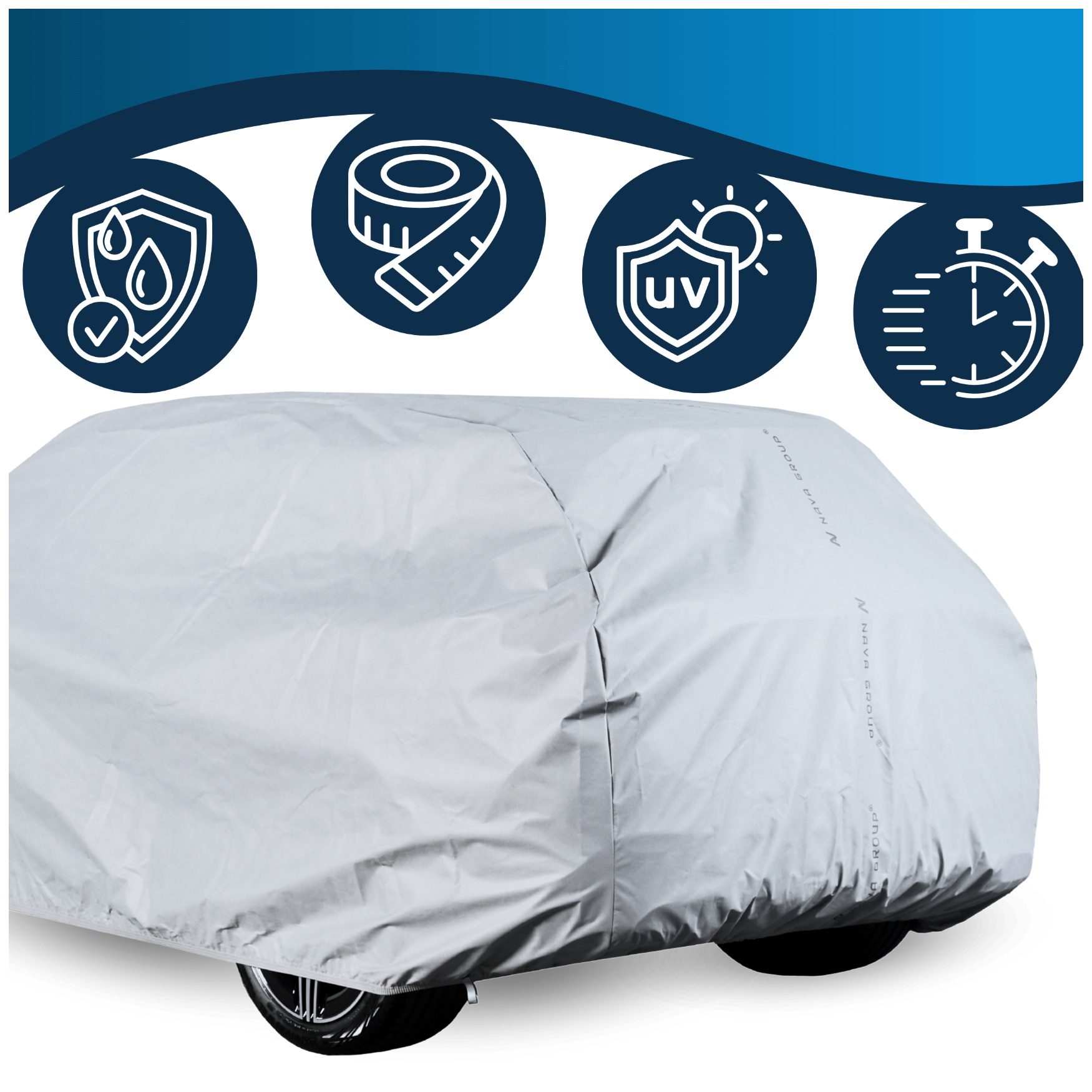 Dzięki elastycznym paskom i specjalnym zaczepom, pokrowiec mocno przylega do pojazdu. Nie zsuwa się ani nie unosi na wietrze – pozostaje na miejscu niezależnie od pogody.