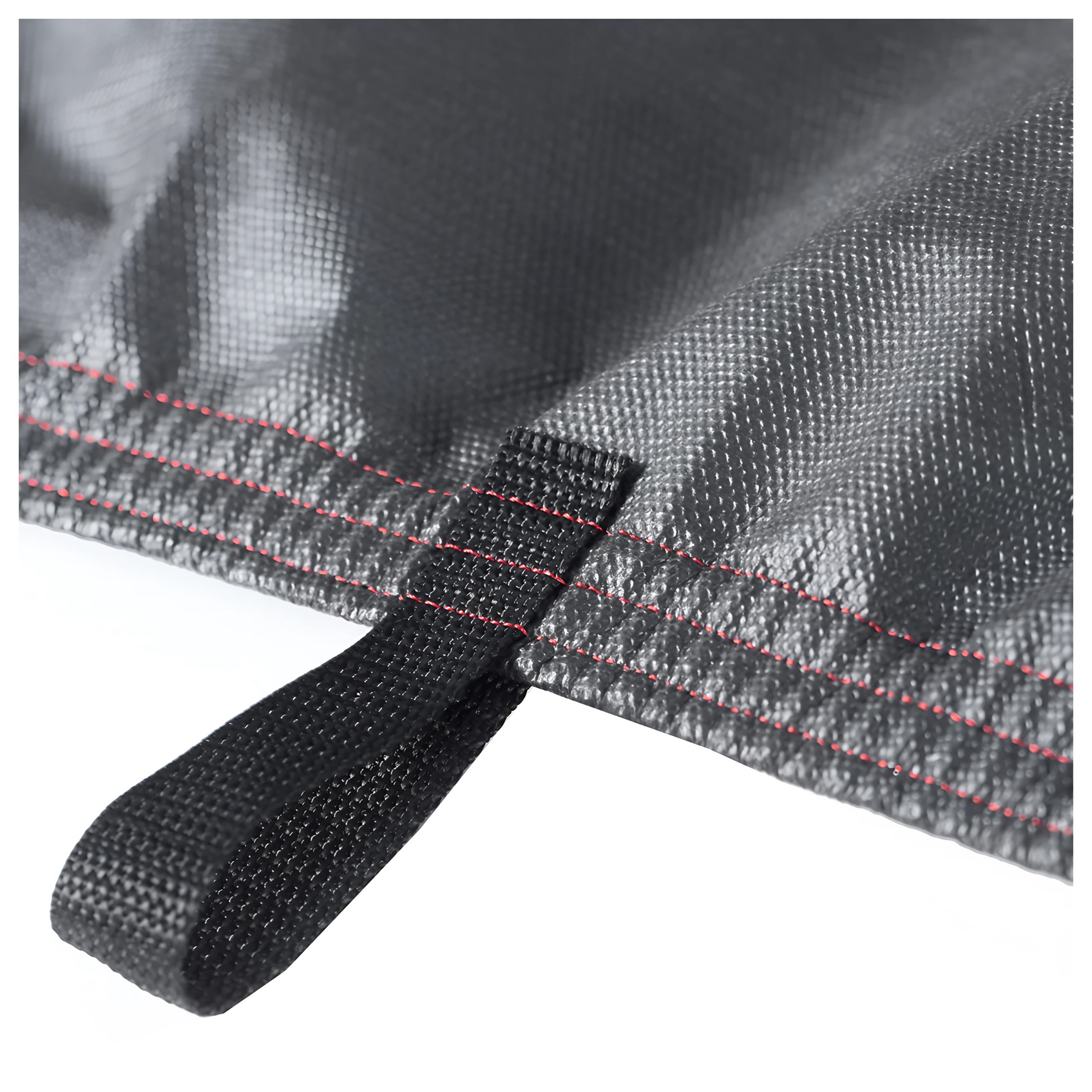 Pokrowiec w kolorze czarnym skutecznie odbija promienie słoneczne, zapobiegając przegrzewaniu się materiału i wnętrza pojazdu. Dodatkowo, zastosowany filtr UV zapewnia długotrwałą ochronę, bez efektu strzępienia i pękania materiału.