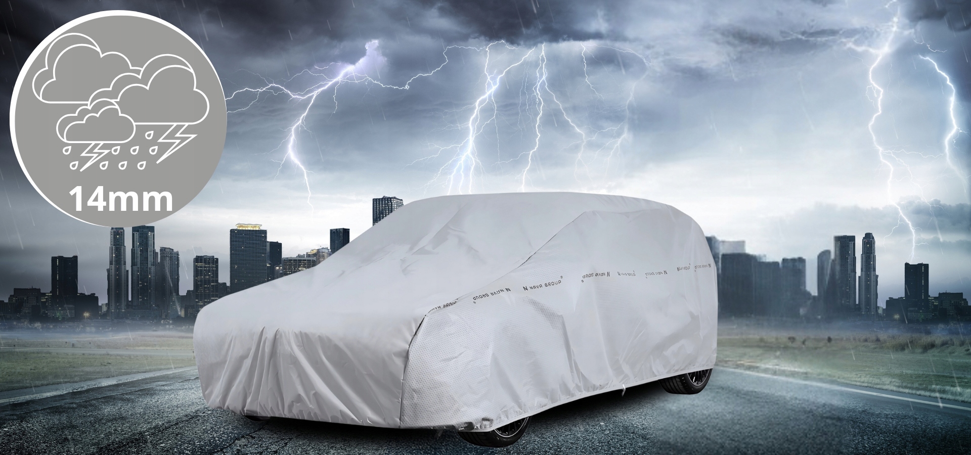 Specjalistyczny pokrowiec przeciwgradowy o grubości 14 mm skutecznie zabezpiecza pojazd przed skutkami gradobicia, intensywnych opadów, wiatru oraz promieniowania UV. Dzięki solidnej konstrukcji i wielowarstwowej budowie, pokrowiec gwarantuje pewną ochronę zarówno w sezonie letnim, jak i zimowym, zapewniając spokój w każdych warunkach.